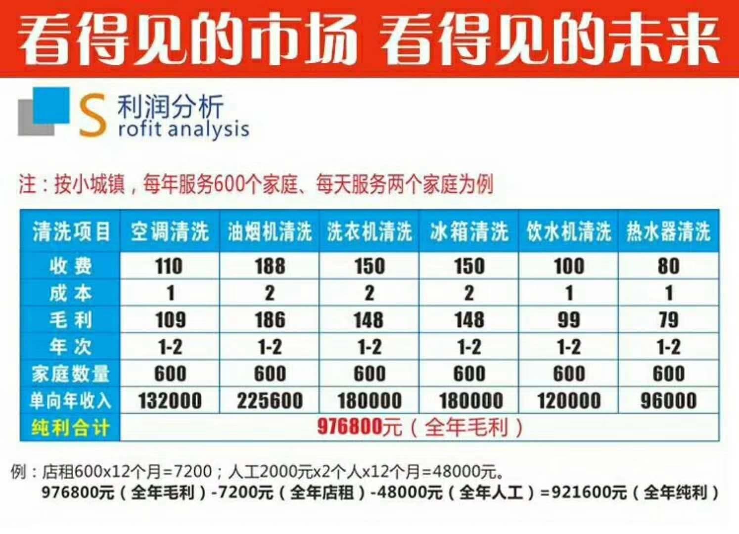 目前,隨著二胎政策的落地實(shí)施,人口數(shù)量不斷增加,家庭的總數(shù)量也隨之增長,家家都有家電清洗需求,市場需求不斷攀升。不只是家庭,像一些學(xué)校、商業(yè)辦公樓、大型寫字樓、酒店等都擁有各種家用電器,可見,未來的家電清洗領(lǐng)域?qū)⑹峭顿Y領(lǐng)域的一塊風(fēng)水寶地。