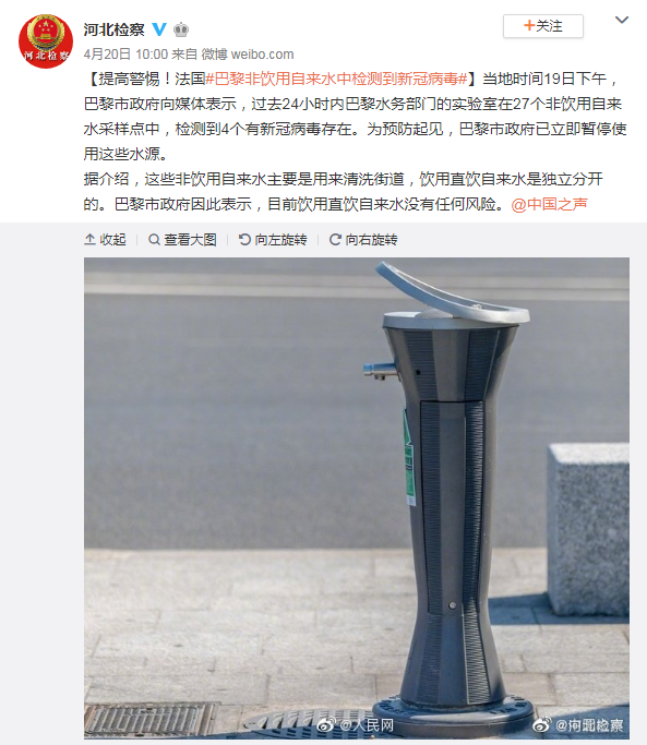 驚!定時(shí)清洗水管,法國(guó)巴黎非飲自來水中檢測(cè)到新冠病